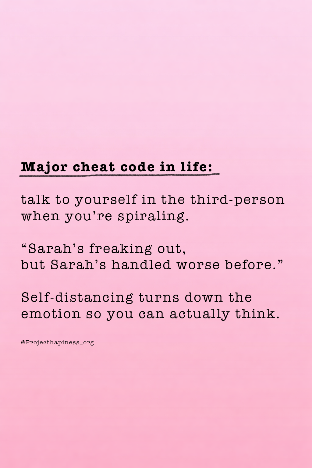 When emotions run high, create a little distance. Say your name, and talk to yourself like someone you care about. This tiny shift in language can create a huge shift in perspective. Use it to cool emotional intensity and to get your clarity back.